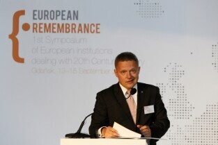 Sympozjum "Pamięć Europy" poświęcone europejskiej kulturze pamięci, w której wzięli udział przedstawiciele europejskich instytucji historycznych. Gdańsk, Dwór Artusa. Nz. Dyrektor Europejskiego Centrum Solidarności Basil Kerski