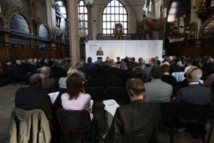 Sympozjum "Pamięć Europy" poświęcone europejskiej kulturze pamięci, w której wzięli udział przedstawiciele europejskich instytucji historycznych. Gdańsk, Dwór Artusa. Nz. Markus Meckel - b. Minister Spraw Zagranicznych NRD, b. Poseł do Bundestagu, członek Kuratorium Europejskiej Sieci Pamięć i Solidarność