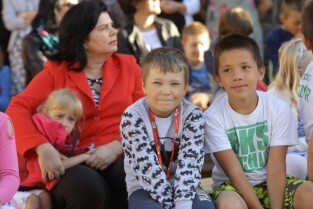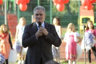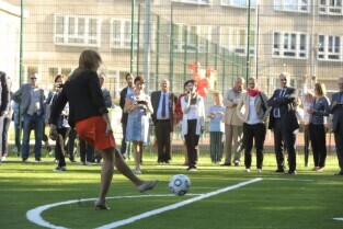 Gdańsk. Szkoła Podstawowa nr 57, otwarcie dwóch nowych boisk. Nz Prezydent Gdańska Paweł Adamowicz.