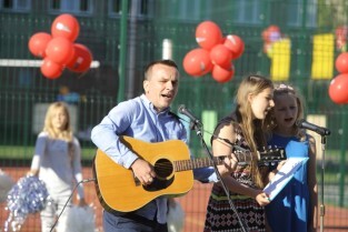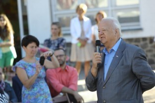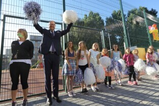Gdańsk. Szkoła Podstawowa nr 57, otwarcie dwóch nowych boisk. Nz Przewodniczący Rady Miasta Bogdan Oleszek.