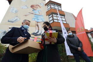 Gdańsk, Szkoła Podstawowa nr 19. Odsłonięcie muralu w ramach akcji "Gdańsk bez plastiku"