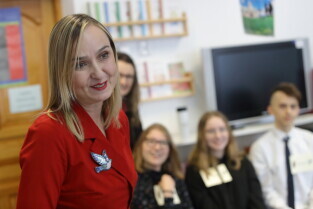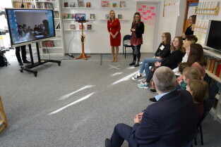 Gdańsk. Szkoła Podstawowa nr 57 Gdańsk, inauguracja autorskiego projektu językowego. Nz. Nauczycielka Karolina Gasińska.