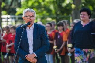 GdaÅ„sk, ul. Opolska. SzkoÅ‚a Podstawowa nr 80. Otwarcie Nowych Boisk. Nz. Piotr Kowalczuk Z-ca Prezydenta ds. polityki spo³ecznej