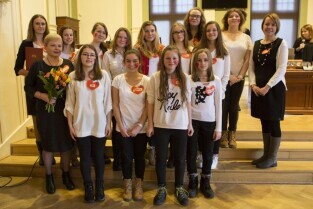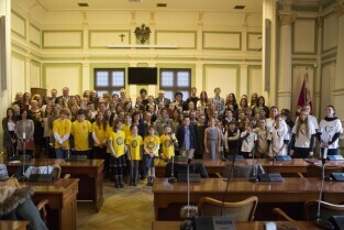 Gdańsk, Nowy Ratusz. Rozstrzygnięcie konkursu Szkoła Społecznie Wrażliwa. Nz. Gimnazjum nr 31 - laureaci w kategorii gimnazja