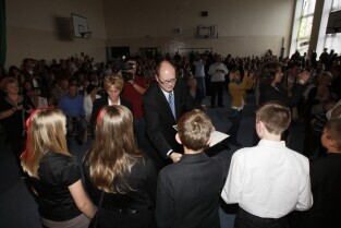 Szkolna Gala Sportu, podczas której Prezydent Gdańska Paweł Adamowicz oraz radni Mirosław Zdanowicz, Marek Bumblis i Jacek Teodorczyk wręczyli młodzieży szkolnej stypendia za osiągnięcia sportowe. Gdańsk Wrzeszcz, II LO