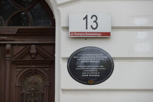 Gdańsk. Szlak Wolności Lecha Wałęsy. Nz. Tablica na budynku ul. Pilotów 17 gdzie w latach 1980-1988 meszkał Lech Wałęsa.