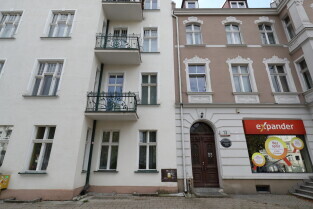Gdańsk. Szlak Wolności Lecha Wałęsy. Nz. Tablica przy ulicy Grunwaldzkiej 103 – miejscu, gdzie mieściła się siedziba Krajowej Komisji Porozumiewawczej NSZZ „Solidarność” do wprowadzenia stanu wojennego 13 grudnia 1981 r. W połowie lat 1990. budynek został zakupiony przez Bank PKO BP i poddany przebudowie, która zmieniła jego wcześniejszy wygląd.