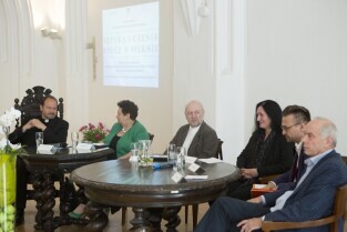 Debata edukacyjna "Sztuka uczenia. Rzecz o pięknie”. Muzeum Narodowe w Gdańsku. Nz. od lewej: ks. Krzysztof Niedałtowski, Halina Kasjaniuk, Jacek Dominiczak, Marzena Nieczuja-Urbańska, Jerzy Snakowski, Leszek Kopeć