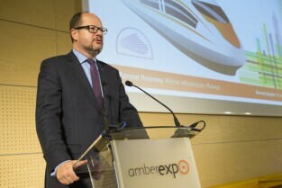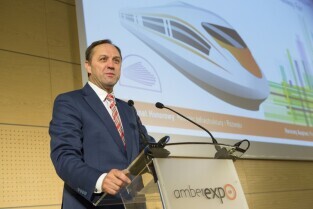 11. Międzynarodowe Targi Kolejowe TRAKO. Gdańsk, Amber Expo. Oficjalne otwarcie targów. Nz. Podsekretarz Stanu w Ministerstwie Infrastruktury i Rozwoju Sławomir Żałobek