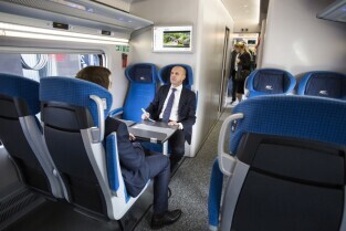 11. Międzynarodowe Targi Kolejowe TRAKO. Gdańsk, Amber Expo. Prezentacja PESA DART - nowego pociągu dla PKP Inter City. Nz. po środku Członek Zarządu PKP Inter City Piotr Rybotycki