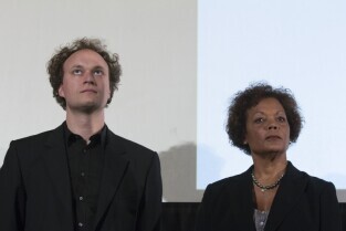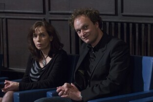 Gdańsk, Kino Neptun. Polska premiera filmu "Tabarly" w reż. Pierra Marcela, opowiadającego historię żeglarza regatowego Erica Tabarly, zmarłego podczas rejsu w 1998 r. Nz. reżyser Pierre Marcel i Jacqueline Tabarly, żona Erica Tabarly'ego