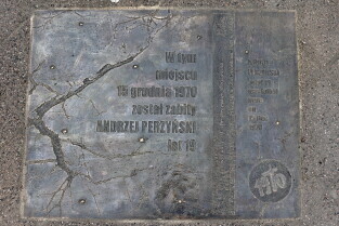 Gdańsk. Tablice Grudnia 1970. Nz. Tablica Andrzeja Perzyńskiego.