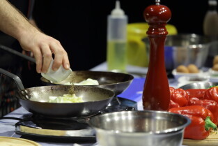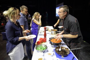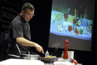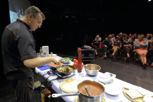 Gdańsk, Gdański Teatr Szekspirowski. Talerzem Po Mapie-odcienie kuchni żydowskiej w ramach Tygodnia Izraelskiego. Nz. Restaurator Paweł Zyner.