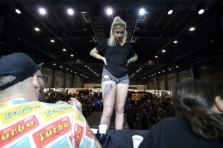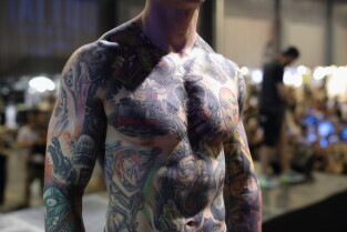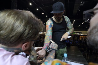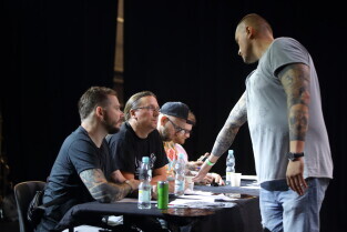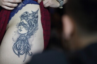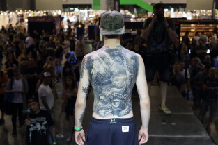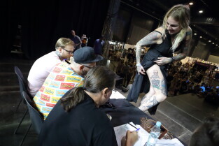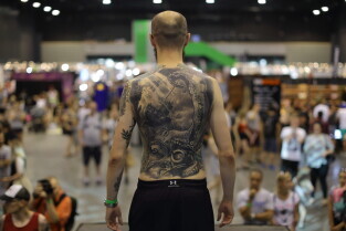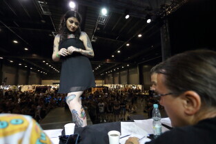 Gdańsk. Tattoo Konwent, konkurs na najlepszy tatuaż marynistyczny.