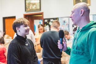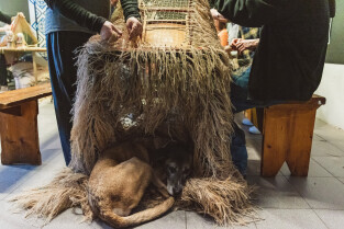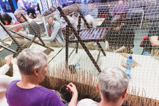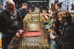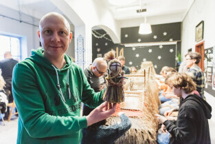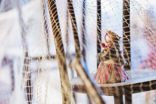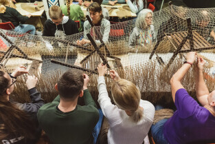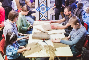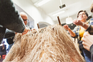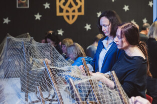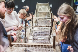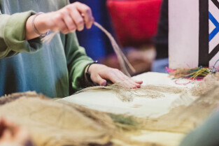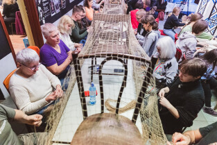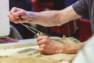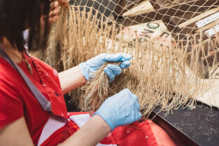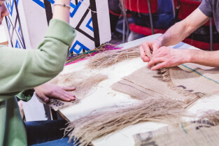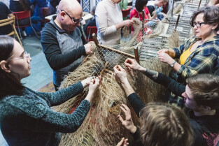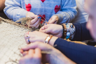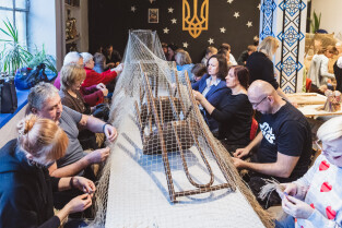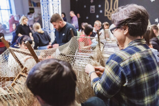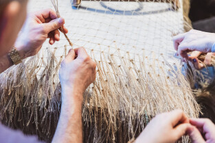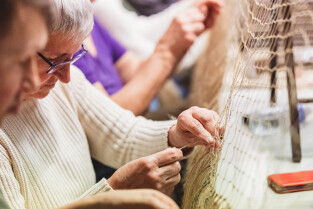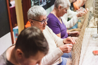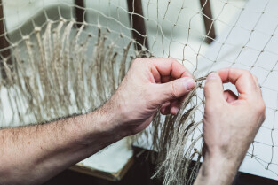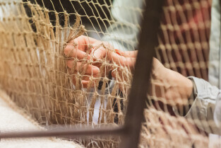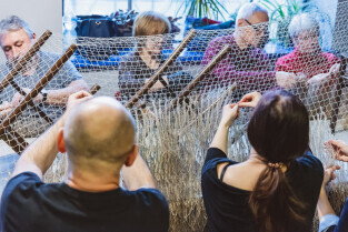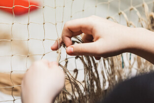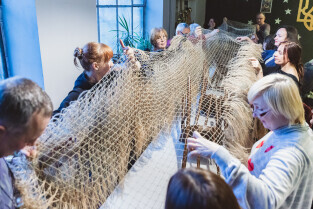 Gdańsk, ul. Aksamitna. Tkanie siatki maskującej.