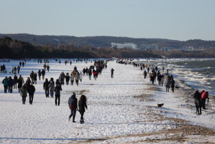 Tłumy ludzi spacerują po plaży w Brzeźnie i Głównym Mieście