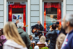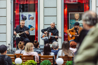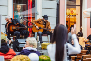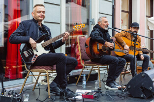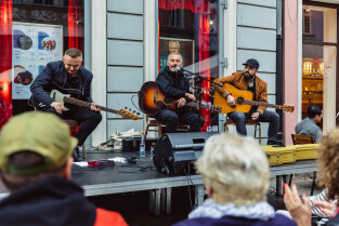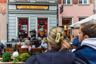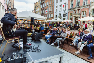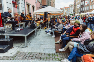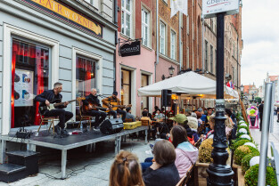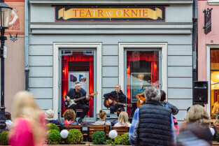 Gdańsk, ul Długa. Tomek Olszewski Trio. Koncert w Teatrze w Oknie