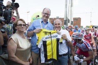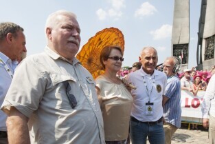 Gdańsk, Plac Solidarności. Start honorowy 71. Tour de Pologne. Nz. były Prezydent RP Lech Wałęsa