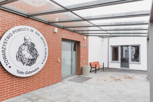 Gdańsk. Towarzystwo Pomocy im. Św. Brata Alberta. Wizyta na budowie schroniska dla bezdomnych mężczyzn.