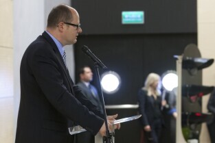 10. Międzynarodowe Targi Kolejowe Trako 2013. Gdańsk Letnica, AmberExpo. Nz. Wiceminister Transportu, Budownictwa i Gospodarki Morskiej Andrzej Massel