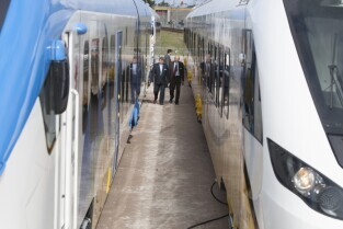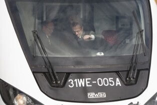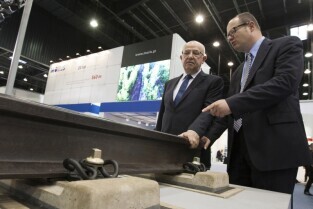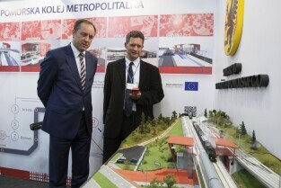 10. Międzynarodowe Targi Kolejowe Trako 2013. Gdańsk Letnica, AmberExpo. Nz. po lewej Marszałek Woj. Pomorskiego Mieczysław Struk