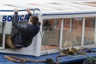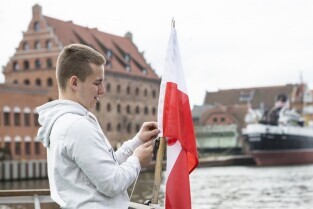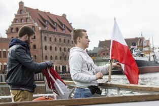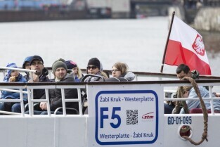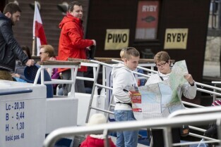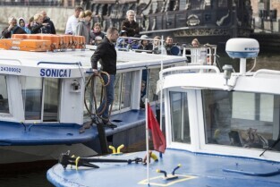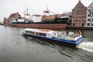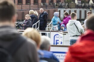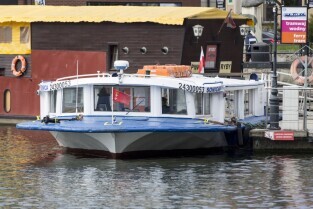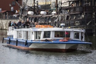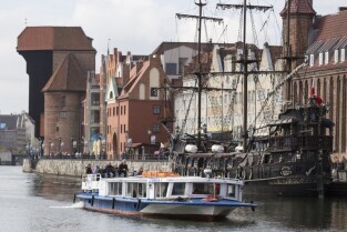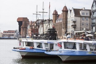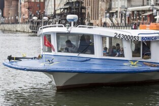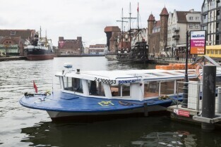 Gdańsk, rzeka Motława przy Targu Rybny. Tramwaj wodny na Westerplatte i do Narodowego Centrum Żeglarstwa w Górkach Zachodnich. Pierwszy dzień funkcjonowania w sezonie 2016.