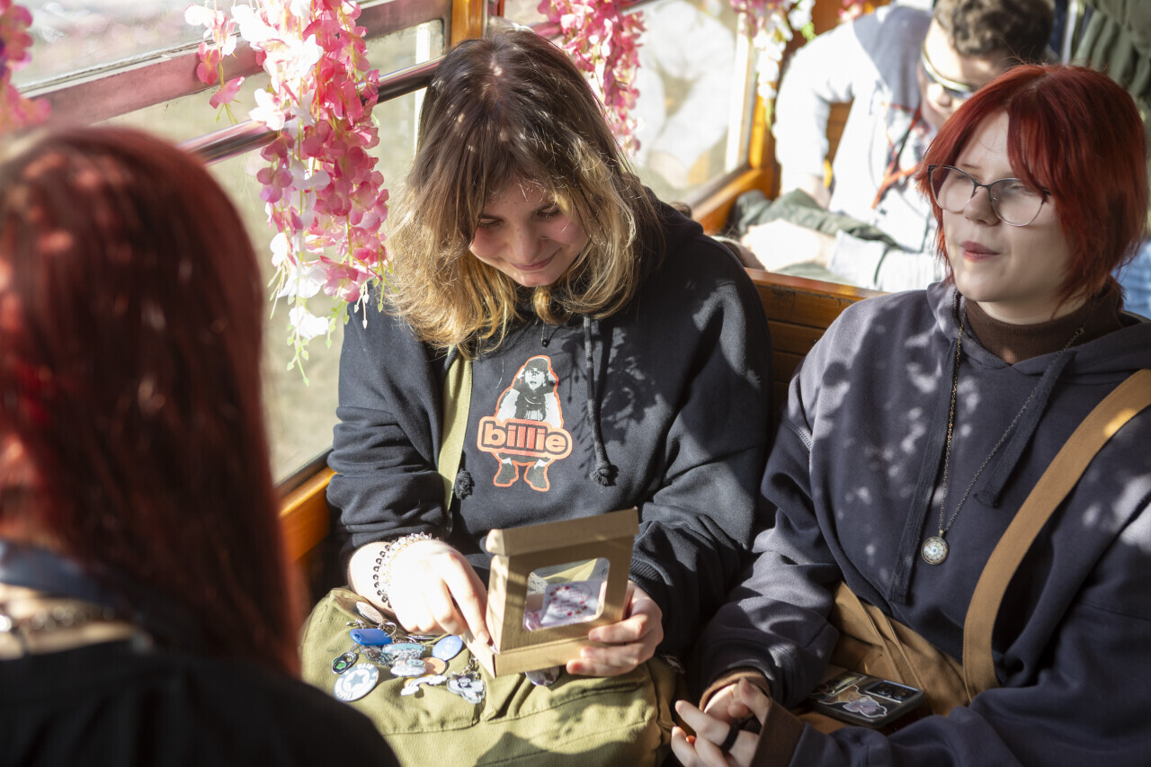 Gdańsk. Z okazji międzynarodowego Dnia Kobiet na ulice miasta wyjechał zabytkowy tramwaj - Konstal N. W trakcie jazdy pasażerki mogły wziąć udział w konkursie muzycznym i spotkać Piotra Borawskiego, zastępcę prezydenta ds. mobilności i bezpieczeństwa, który rozdawał paniom prezenty
