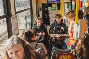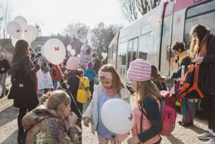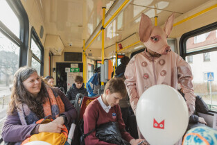 Gdańsk. Tramwaj zwany Miniaturą. Międzynarodowy Dzień Teatru