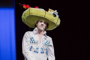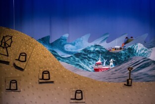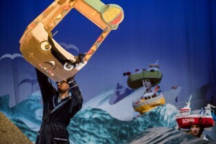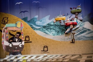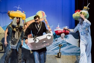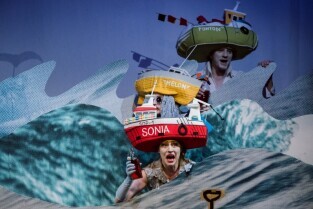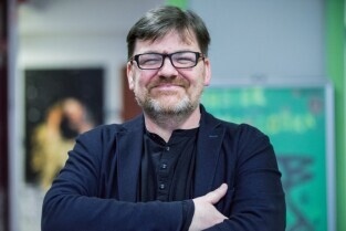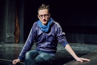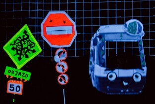 Gdańsk, ul. Grunwaldzka. Tramwaje - próba medialna w Teatrze Miniatura. Nz Michał Derlatka - reżyser teatralny, aktor, lalkarz