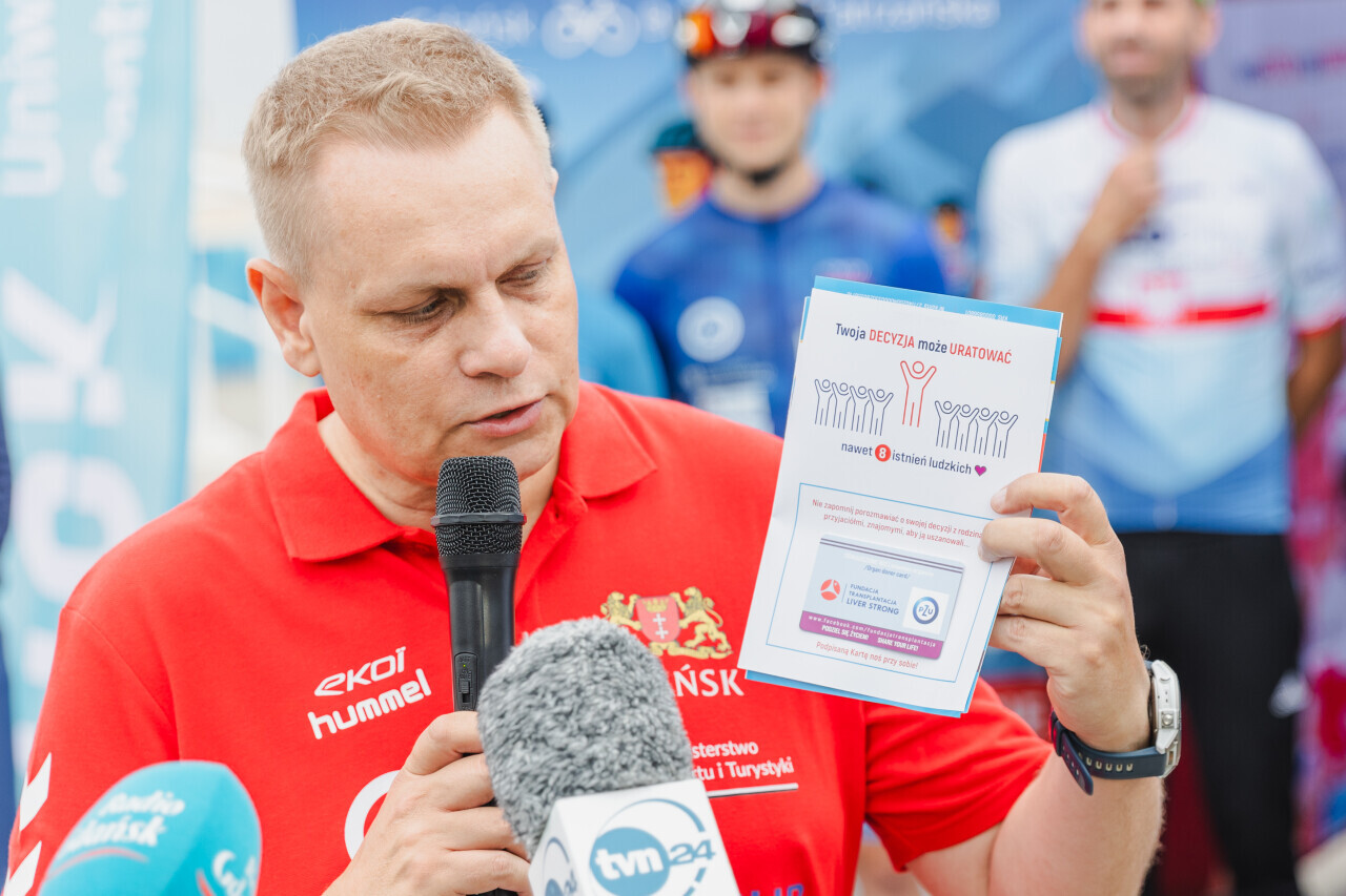 Gdańsk, Molo w Brzeźnie. Transplant tour z morza do gór. Nz. Grzegorz Perzyński, prezes fundacji transplantacyjnej „Liver Strong”