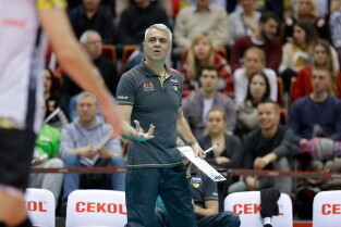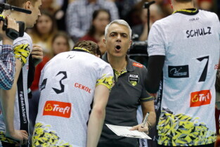 Gdańsk. Mecz siatkówki Trefl Gdańsk - Indykpol AZS Olsztyn. Nz. Trener Trefla Andrea Anastasi.