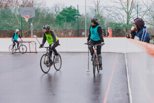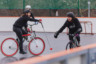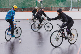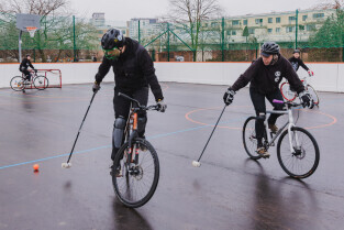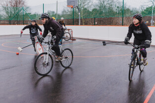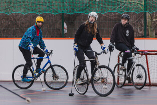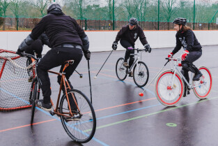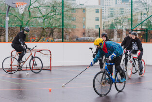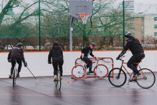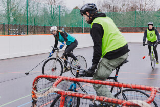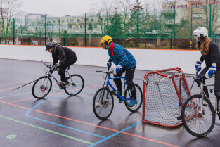 Gdańsk, skrzyżowanie Czarny Dwór i aleja Jana Pawła II. Trening bike polo