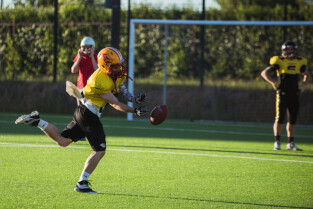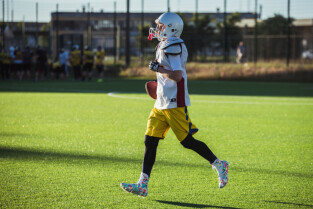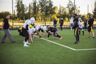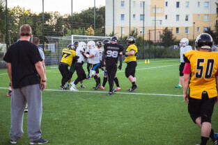Gdańsk, ul. Wyzwolenia. Trening drużyn futbolu amerykańskiego. Białe Lwy i Seahawks B