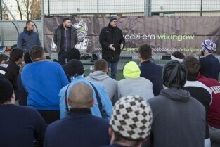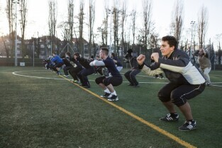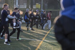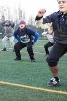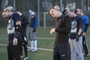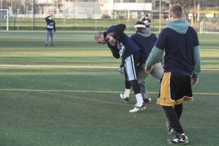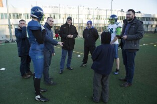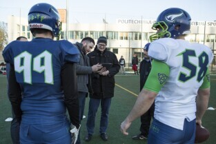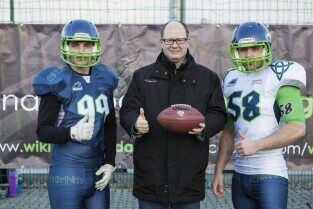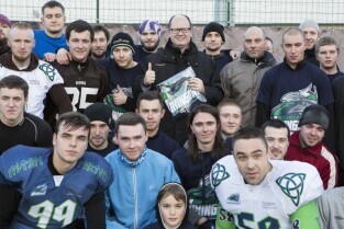 Trening drużyny futbolu amerykańskiego "Wikingowie Gdańsk”, podczas którego z zawodnikami spotkał się Prezydent Gdańska Paweł Adamowicz. Gdańsk, Centrum Sportu Akademickiego PG przy al. Zwycięstwa