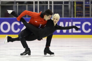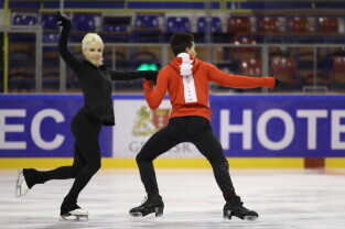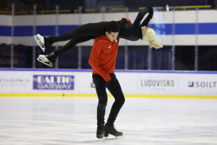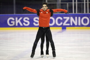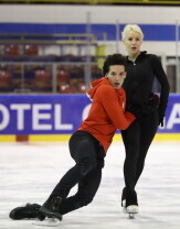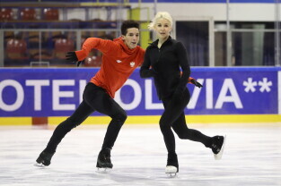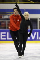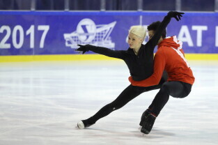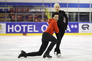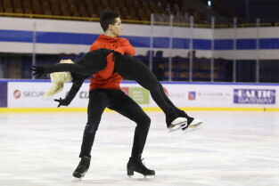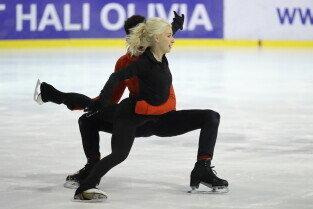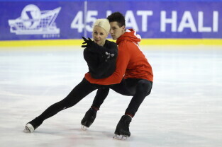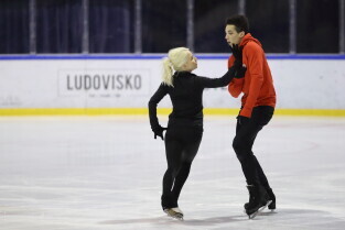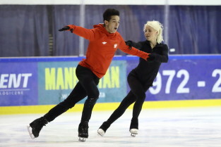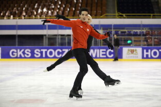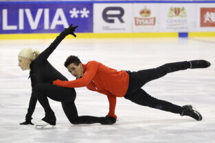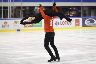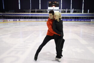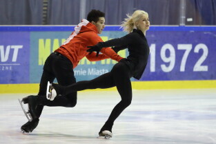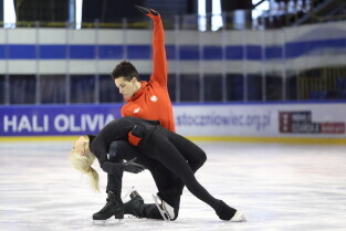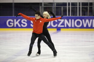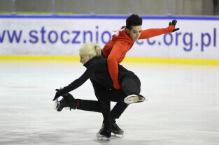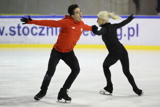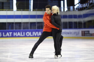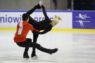Gdańsk. Trening Justyny Plutowskej i Jeremiego Flemin, łyżwiarzy figurowych GKS Stoczniowiec Gdańsk.
