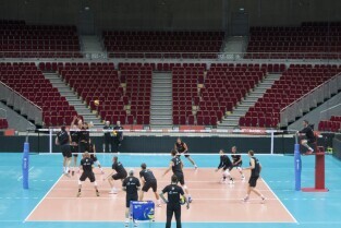 Trening reprezentacji Polski w siatkówce przed rozpoczęciem Mistrzostw Europy w Piłce Siatkowej Mężczyzn 2013. Ergo Arena, Gdańsk-Sopot