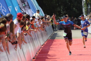 Gdańsk. Triathlon Gdańsk 2019. Nz. Zwycięzca Triathlonu Tomasz Szala.