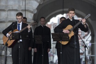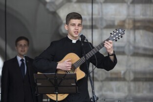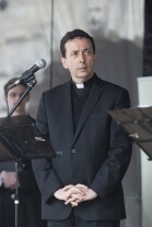 Gdańsk, Długi Targ. Trójmiasto czyta Biblię. Nz. Rektor Gdańskiego Seminarium Duchownego ks. Grzegorz Szamocki
