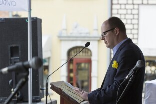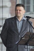 Gdańsk, Długi Targ. Trójmiasto czyta Biblię. Nz. Przewodniczący Oddziału w Gdańsku Katolickiego Stowarzyszenia „Civitas Christiana” Grzegorz Pokorniewski