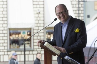 Gdańsk, Długi Targ. Trójmiasto czyta Biblię. Nz. Prezydent Gdańska Paweł Adamowicz