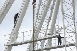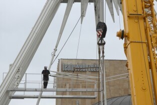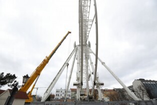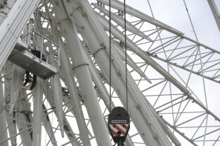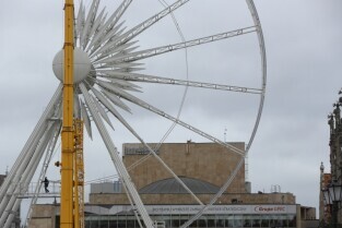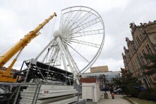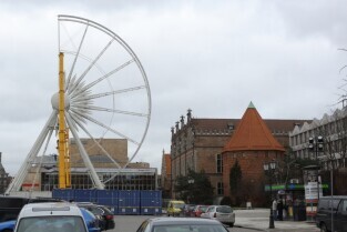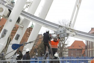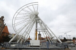 Gdańsk, Targ Węglowy. Trwa rozbiórka koła AmberSky.