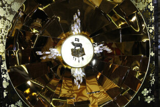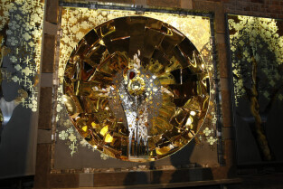 Ołtarz tryptyk wykonany przez gdańskiego artystę Mariusza Drapikowskiego, który powędruje do Jerozolimy. Nz. Tryptyk z zewątrz, tuż przed oficjalnym otwarciem