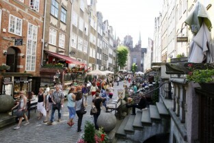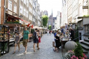Turyści w spacerujący po ul. Mariackiej w Gdańsku
