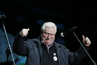 Widowisko plenerowe "Solidarność. Twój anioł Wolność ma na imię!" w ramach 30. rocznicy Sierpnia'80 w reżyserii Roberta Wilsona. Gdańsk, Stocznia Gdańska. Nz. były Prezydent RP Lech Wałęsa