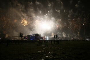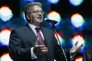Widowisko plenerowe "Solidarność. Twój anioł Wolność ma na imię!" w ramach 30. rocznicy Sierpnia'80 w reżyserii Roberta Wilsona. Gdańsk, Stocznia Gdańska. Nz. Prezydent RP Bronisław Komorowski