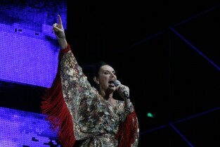 Widowisko plenerowe "Solidarność. Twój anioł Wolność ma na imię!" w ramach 30. rocznicy Sierpnia'80 w reżyserii Roberta Wilsona. Gdańsk, Stocznia Gdańska. Nz. występ Kayah