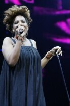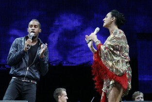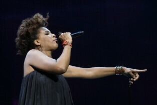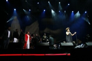 Widowisko plenerowe "Solidarność. Twój anioł Wolność ma na imię!" w ramach 30. rocznicy Sierpnia'80 w reżyserii Roberta Wilsona. Gdańsk, Stocznia Gdańska. Nz. występ Macy Gray