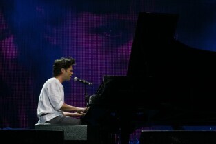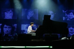 Widowisko plenerowe "Solidarność. Twój anioł Wolność ma na imię!" w ramach 30. rocznicy Sierpnia'80 w reżyserii Roberta Wilsona. Gdańsk, Stocznia Gdańska. Nz. występ Rufus Wainwright