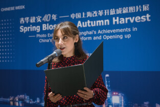 Gdańsk. Teatr Szekspirowski. Tydzień Chiński wystawa "40 lat Szanghaju" i spektakl "Ja, Hamlet". Nz. Pani ZHAO Xiuzhen, Konsul Generalna Chińskiej Republiki Ludowej w Gdańsku