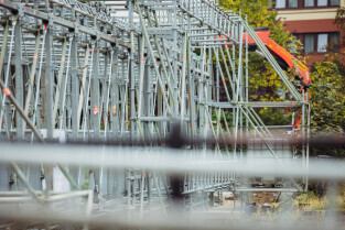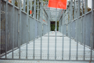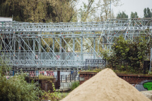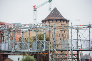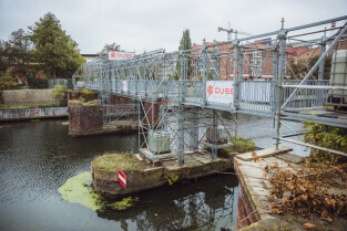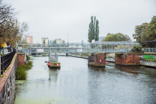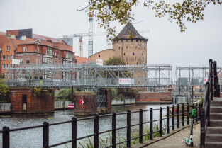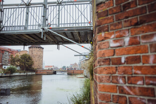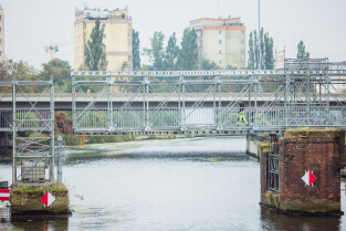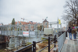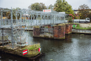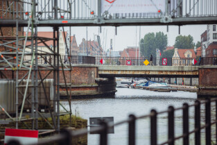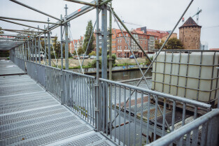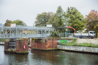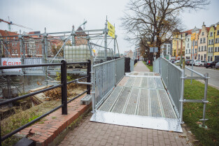 Gdańsk, ul. Szopy. Tymczasowy mostek na Motławie
